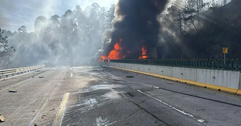 “Cierre a la circulación en ambos sentidos por atención de accidente (choque por alcance múltiple e incendio de automóviles). Toma tus precauciones”, señaló vía redes sociales Caminos y Puentes Federales de Ingresos y Servicios Conexos (Capufe).