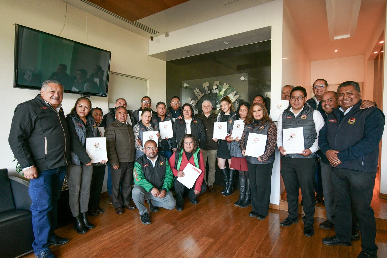 Servidoras y servidores públicos agremiados al Sindicato Único de Trabajadores de los Poderes, Municipios e Instituciones Descentralizadas del Estado de México (Suteym), con adscripción en dependencias del sector central, y de diferentes puntos de la entidad, recibieron créditos del Fondo de Apoyo a la Vivienda, en las modalidades de autoconstrucción y redención de gravamen. Herminio Cahue Calderón, secretario general del sindicato, presidió la entrega de esta prestación que, señaló, va directamente y fortalece al seno familiar. En este sentido, puntualizó que el crédito se otorga a cero intereses, lo que lo hace único en su tipo.