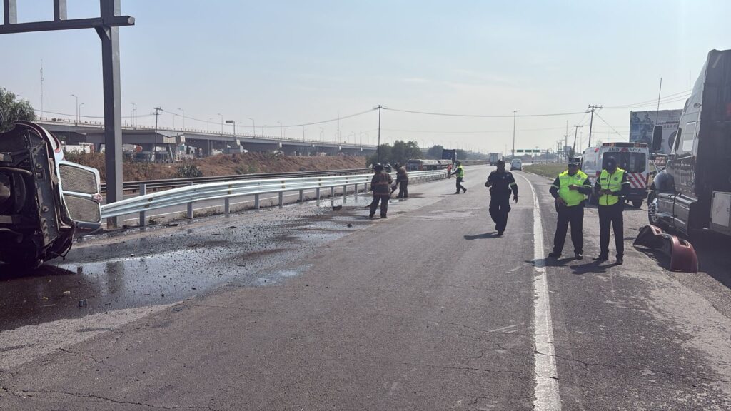 Los hechos se registraron a la altura del kilómetro 34 del CEM, con dirección Las Américas, donde un tractocamión tipo tráiler, con razón social “Jomna Logística”, procedente de Reynosa, sufrió una volcadura quedando la caja hacía los carriles centrales, resultando dos personas lesionadas, las cuales fueron atendidas y trasladadas por unidades del SUM al Hospital José María Rodríguez.