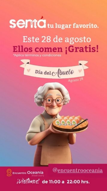 Sin duda, los abuelitos son primordiales en la familia, ya que ellos nos consienten y apapachan cada día que pasamos con ellos. Es por ello, que el centro comercial Encuentro Oceanía en alianza con Senta los invita a comer durante su día especial.
