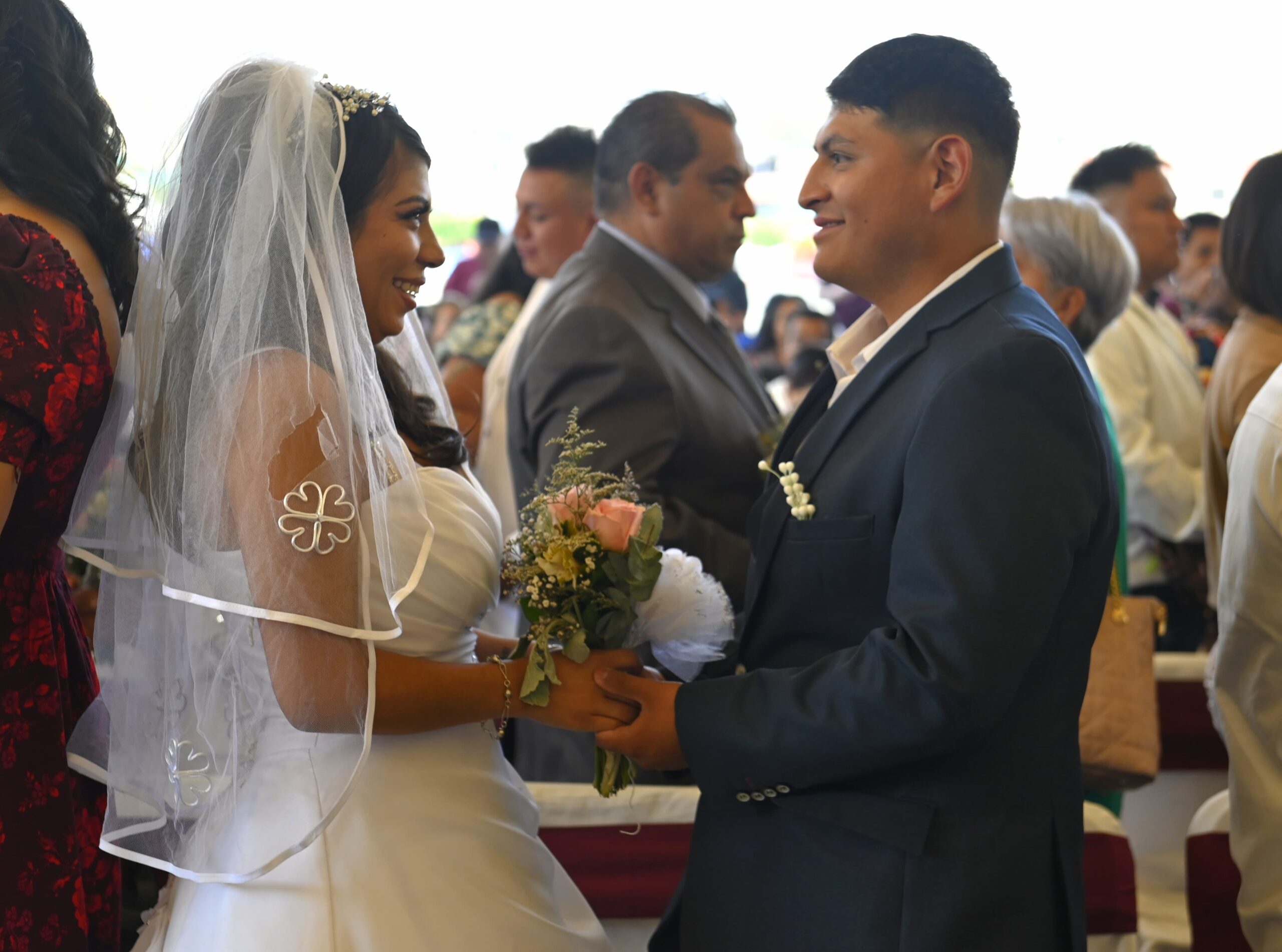 Este 14 de febrero Día del Amor y la Amistad, 46 parejas celebraron su matrimonio en el Teatro Algarabía ubicado en la explanada del Palacio Municipal durante las Bodas Comunitarias “Integrando Familias”, acto encabezado por el alcalde Raciel Pérez Cruz, quien felicitó a las novias y novios por esta unión que brinda alegría en sus hogares.
