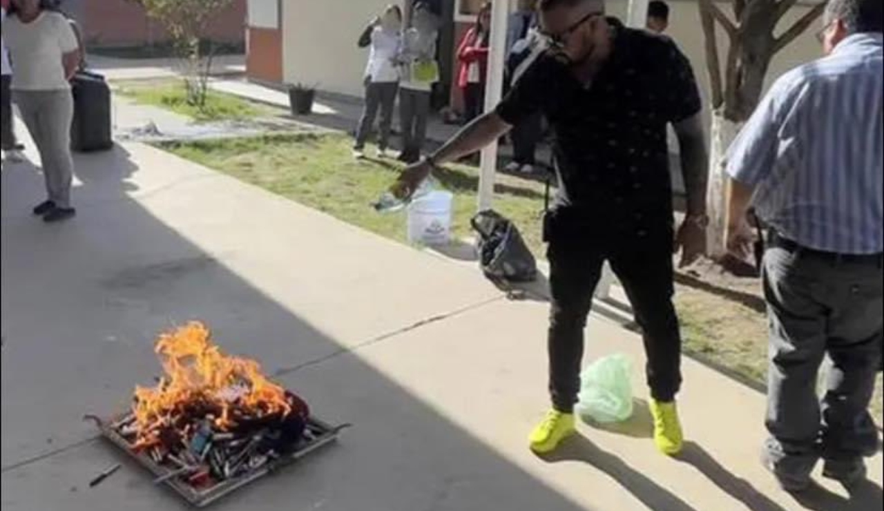 “También llevamos a cabo la quema y destrucción de artículos decomisados que se encuentran prohibidos en el reglamento escolar, mismos que todos los padres de familia aceptaron y dieron su consentimiento”, se leía en la publicación, la cual fue eliminada posteriormente.