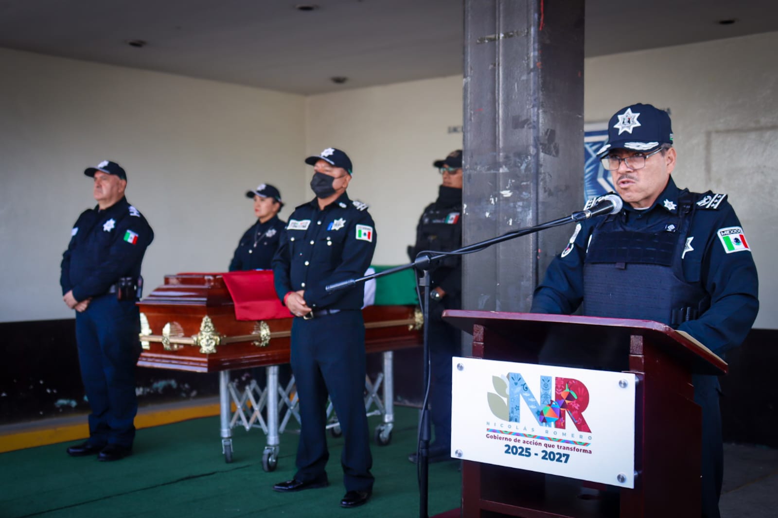 Al dirigirse a la familia del policía caído, señaló: “A nombre de la Dirección de Seguridad Pública y Protección Ciudadana de Nicolás Romero, reciban nuestras más profundas condolencias, tengan la seguridad de que contarán en todo momento con nuestra presidenta municipal, Yoselin Mendoza. Rogando encuentren pronta resignación y con orgullo, lleven el recuerdo de la valentía, el profesionalismo y honradez, tal y como transcurrió la vida personal y profesional de nuestro compañero.”