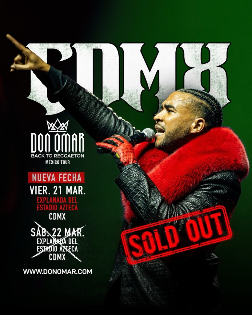 El entusiasmo por su próxima visita a la Ciudad de México ha sido tal que, tras agotar en tiempo récord las entradas para su primer concierto programado para el 21 de marzo de 2025, Don Omar ha confirmado una segunda fecha en la Explanada del Estadio Azteca. Este recital forma parte de su gira mundial Back to Reggaetón, que busca celebrar su trayectoria y el impacto cultural del género urbano.