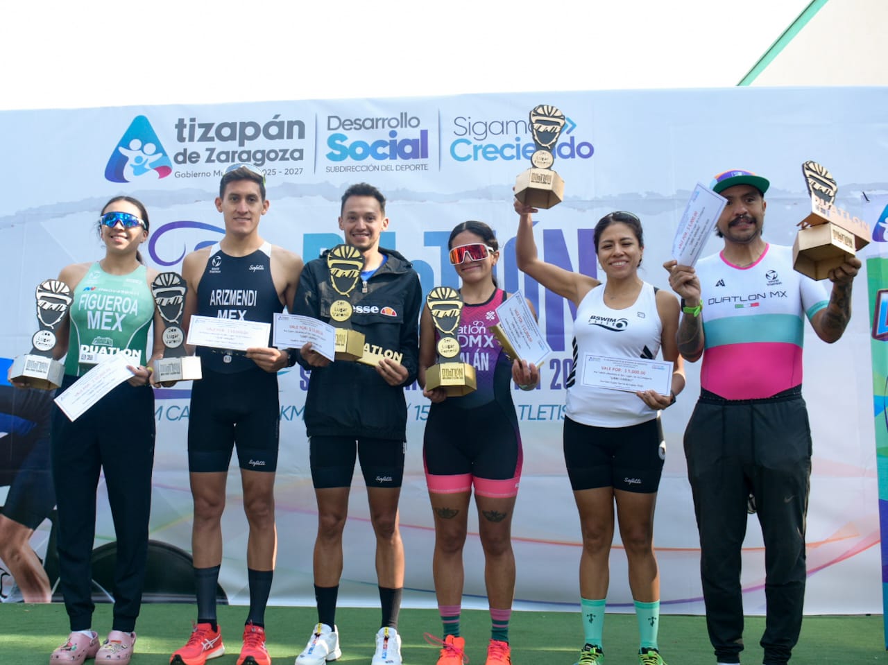 En esta primera edición, más de 120 atletas realizaron un recorrido de 3 km de carrera, 12 km de ciclismo y 1,500 metros de atletismo, cada una de estas competencias en tiempos récord, demostrando que las y los atizapenses hacen del deporte un estilo de vida.