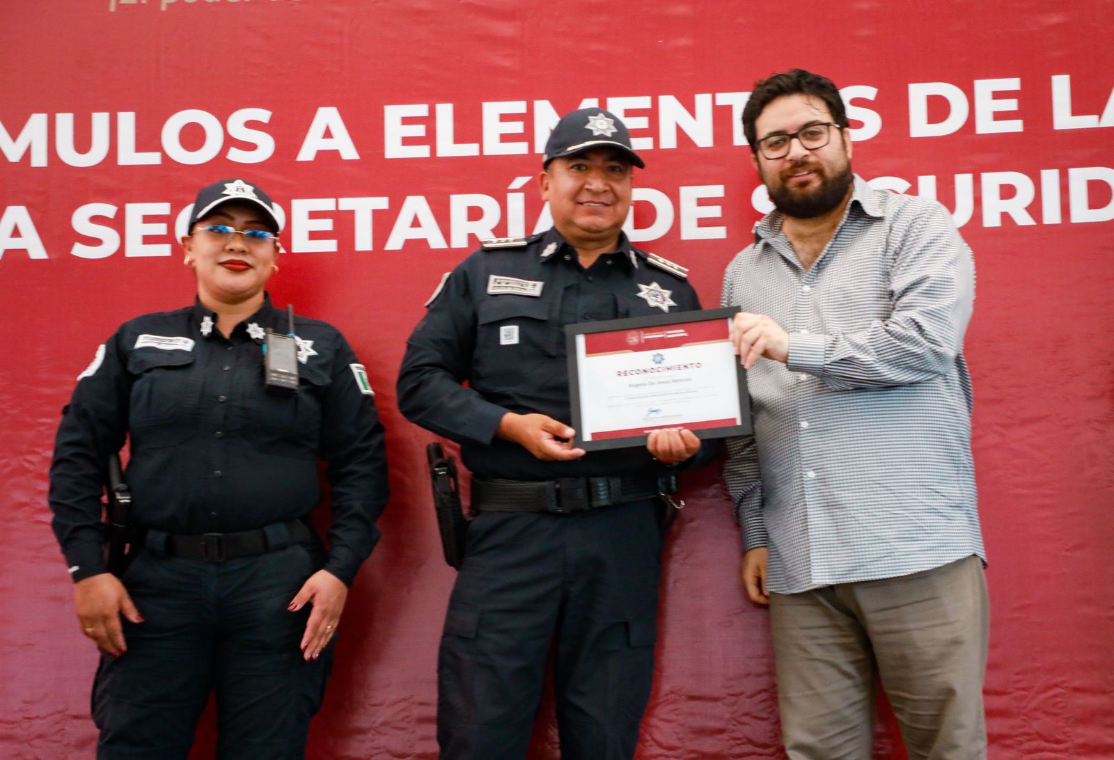 “Hoy es el momento de celebrar a los buenos elementos, de demostrar que tanto la Policía Estatal como la Guardia Municipal, tienen gente que cumple a cabalidad su propósito de servir a la comunidad, que es salvaguardar el orden y que es mantener la paz y la tranquilidad pública”, subrayó durante la entrega de estímulos a elementos de la Guardia Municipal.