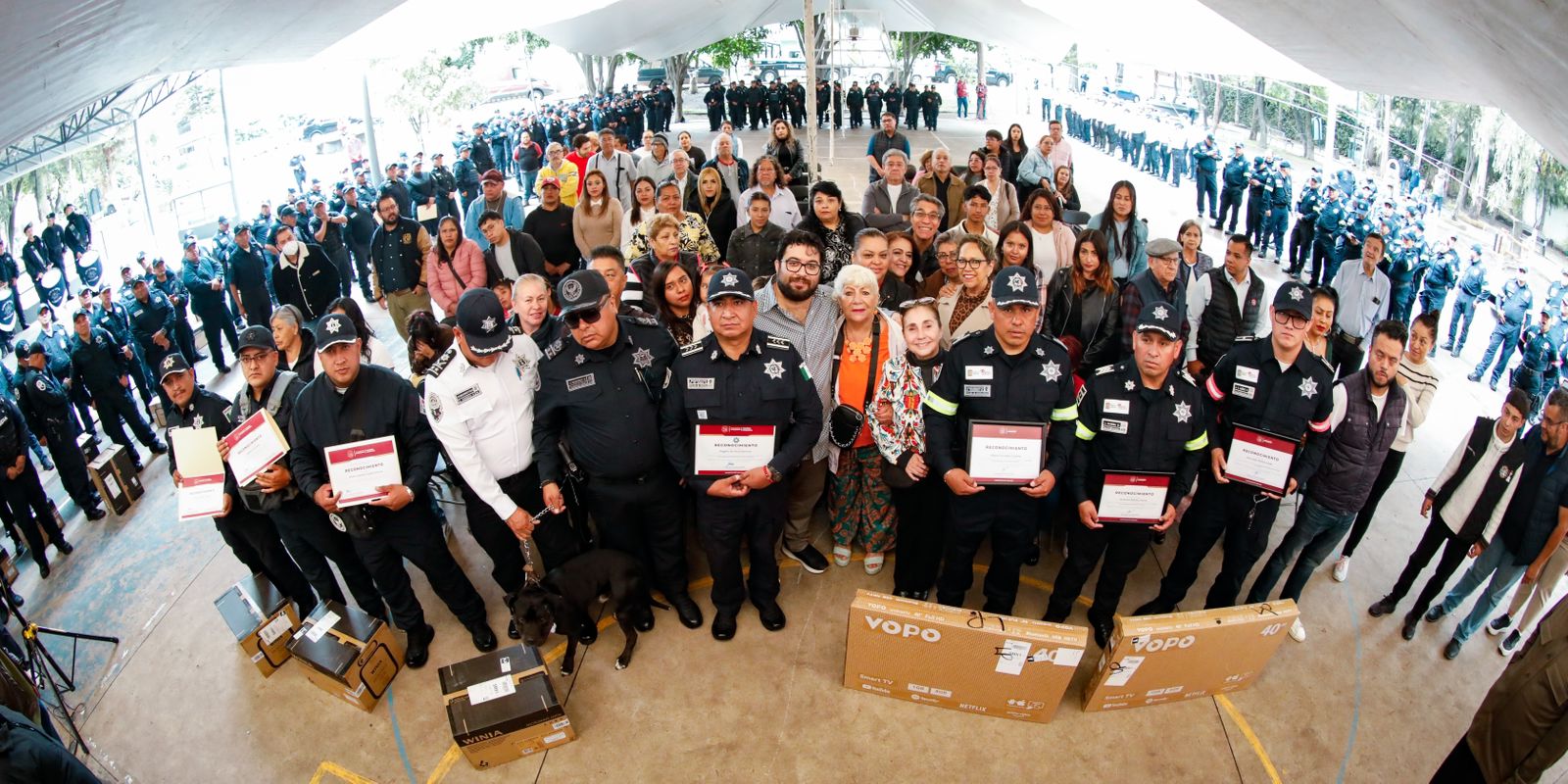 Ante mandos policiales de la Guardia Municipal y de la Policía Estatal dijo a todas y todos los elementos que se les reconoció que, al final del año tendrán derecho a participar en la rifa de 10 automóviles. También informó que se trabaja con el área de administración para mejorar sus condiciones laborales.