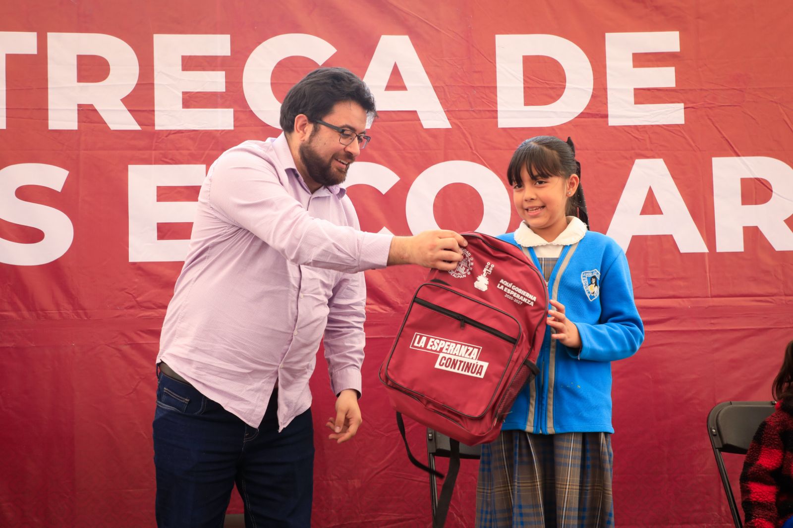 • Fueron 1,200 kits escolares en el campo de fútbol El Torito, de la colonia Lomas de San Agustín.