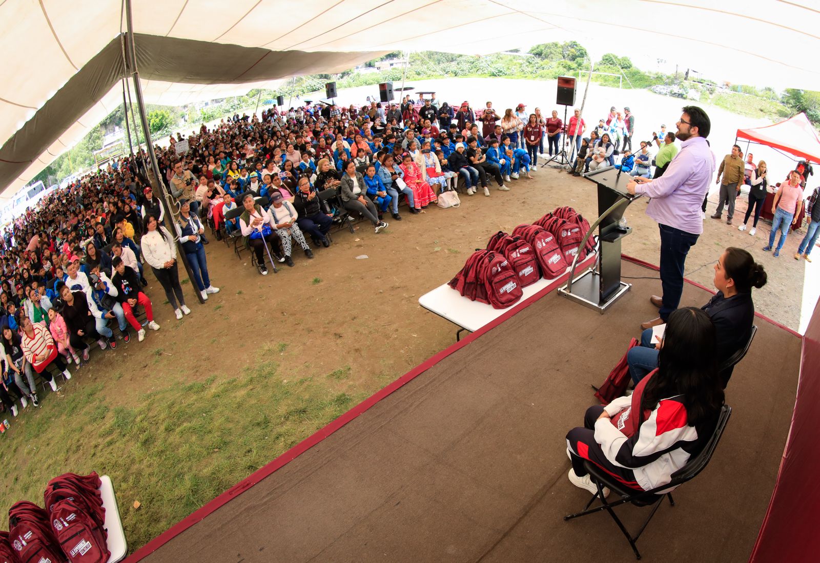 Ante beneficiarios reunidos en el campo de fútbol El Torito, y acompañado de servidores públicos municipales, Montoya Márquez, señaló que esta entrega se suma a la que se realizó en Rincón Verde, en donde se entregaron otros mil kits escolares.