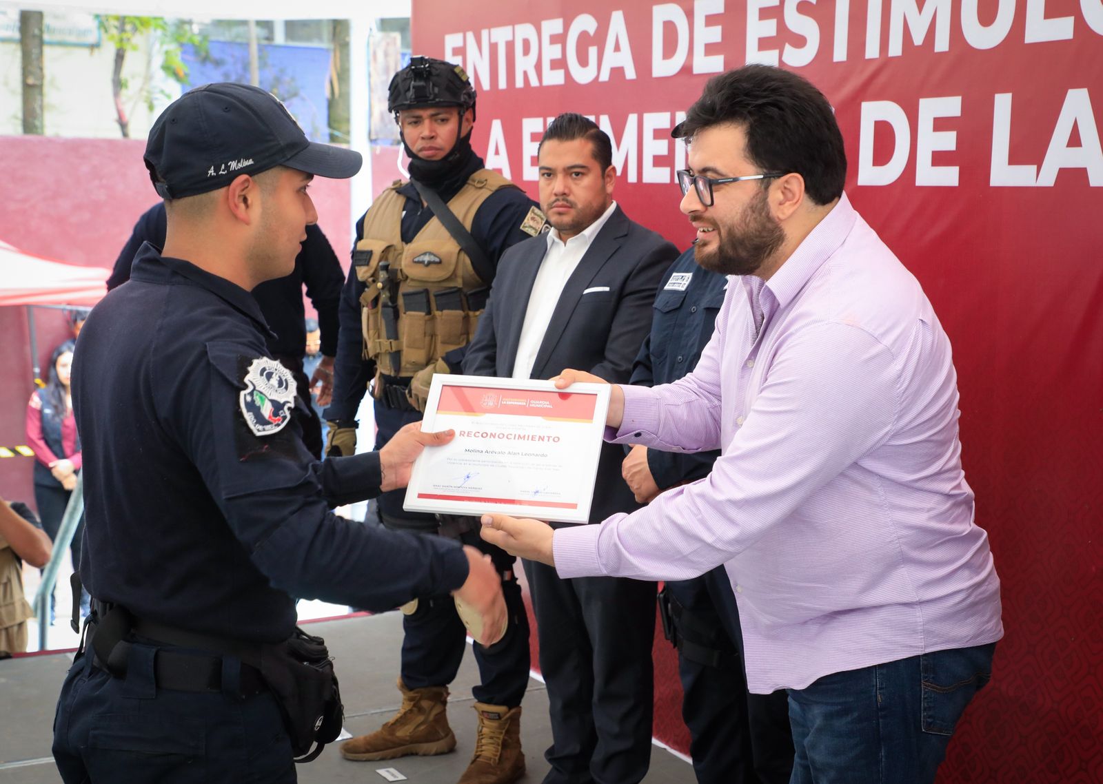 Como parte de la Estrategia de Seguridad con Todo y en base a los avances en la reducción en la incidencia delictiva en Naucalpan, el presidente municipal, Isaac Montoya Márquez entregó 34 estímulos y reconocimientos a elementos de la Guardia Municipal por su labor destacada en diversos actos que contribuyen a la baja de delitos en el municipio.