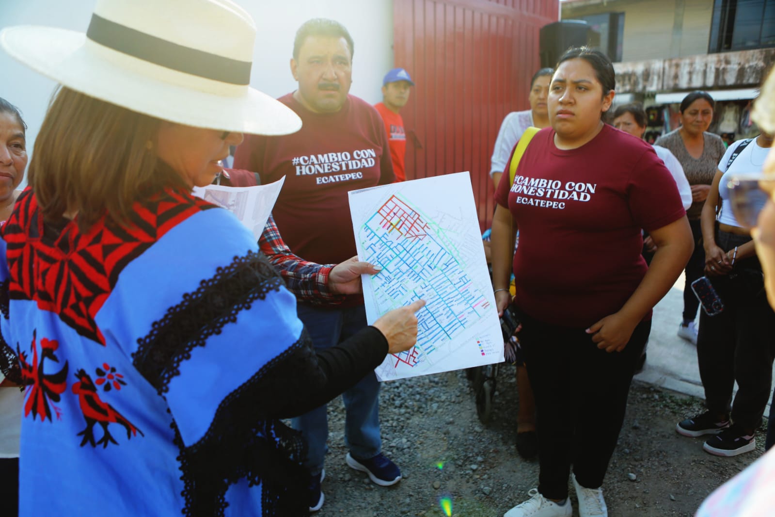 La alcaldesa se reunió con vecinos de Ejidos de San Cristóbal y San Andrés Ejidos en la calle Caoba, donde dio el banderazo a la rehabilitación del pozo Benito Juárez, el cual fue abandonado por más de ocho meses por la administración pasada.