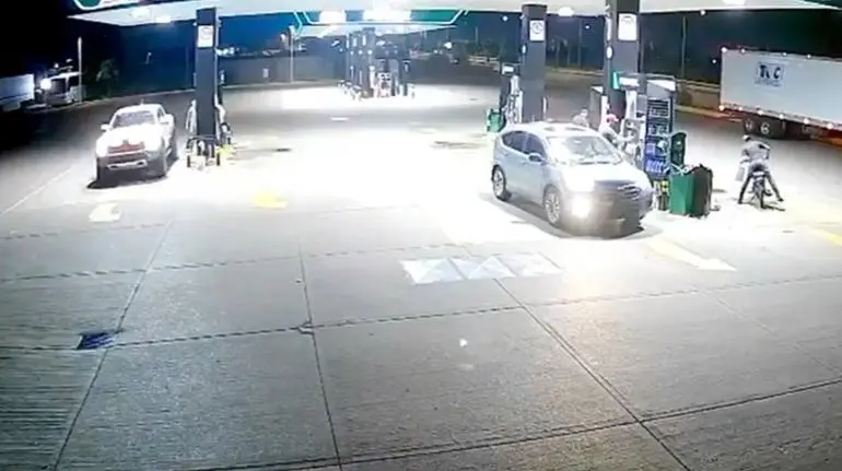 Con base en la grabación que tiene las 21:57 horas, se observa el instante en que una camioneta, en la que presuntamente viajaba Cuén Ojeda llega a una gasolinera para cargar combustible. Momento en que dos sujetos a bordo de una motocicleta llegan a ese sitio, uno de ellos baja y abre la puerta del vehículo del exrector, a quien le dispara en varias ocasiones.