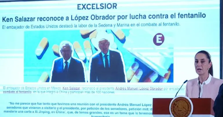 Acto seguido, Sheinbaum Pardo recordó que con antelación, Salazar había reconocido la estrategia de seguridad de López Obrador para combatir el tráfico de fentanilo.