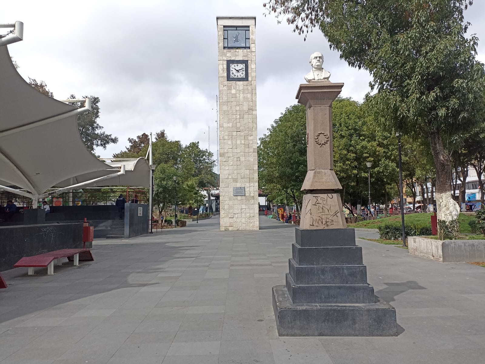 Agregó: “Hay otra pequeña escultura que se encuentra aquí en el jardín, en el costado norte del reloj. Es un pequeño busto de Morelos que se conoce como El Bachiller. Esa escultura fue colocada en 1977, siendo presidente municipal Pedro Salinas Ortega, es el que la promueve. Originalmente la escultura estuvo al oriente del reloj, mirando de frente al centro de San Cristóbal, cuenta la tradición oral que ese monumento fue colocado ahí porque cuando iban a enterrar a Morelos, ahí colocaron su cuerpo y ahí derramó su sangre. En reconocimiento, por eso hacen esa pequeña escultura”.