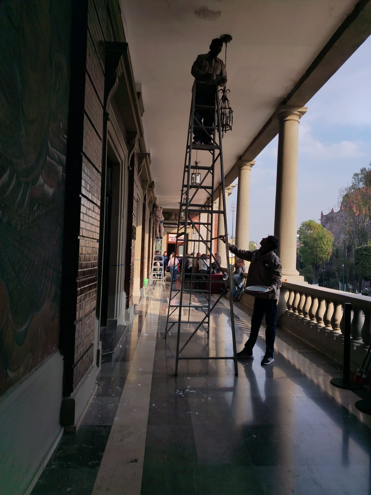 No era de esperarse la reacción del alcalde de Tlalnepantla, Raciel Pérez Cruz, sobre todo por la visita de Claudia Sheinbaum y la gobernadora Delfina Gómez, a la demarcación, por lo cual, trabajadores del ayuntamiento como por arte de magia ejecutan acciones de limpieza y lucimiento en el Palacio municipal para aparentar lo que no se hace en el municipio en lo referente a limpieza.