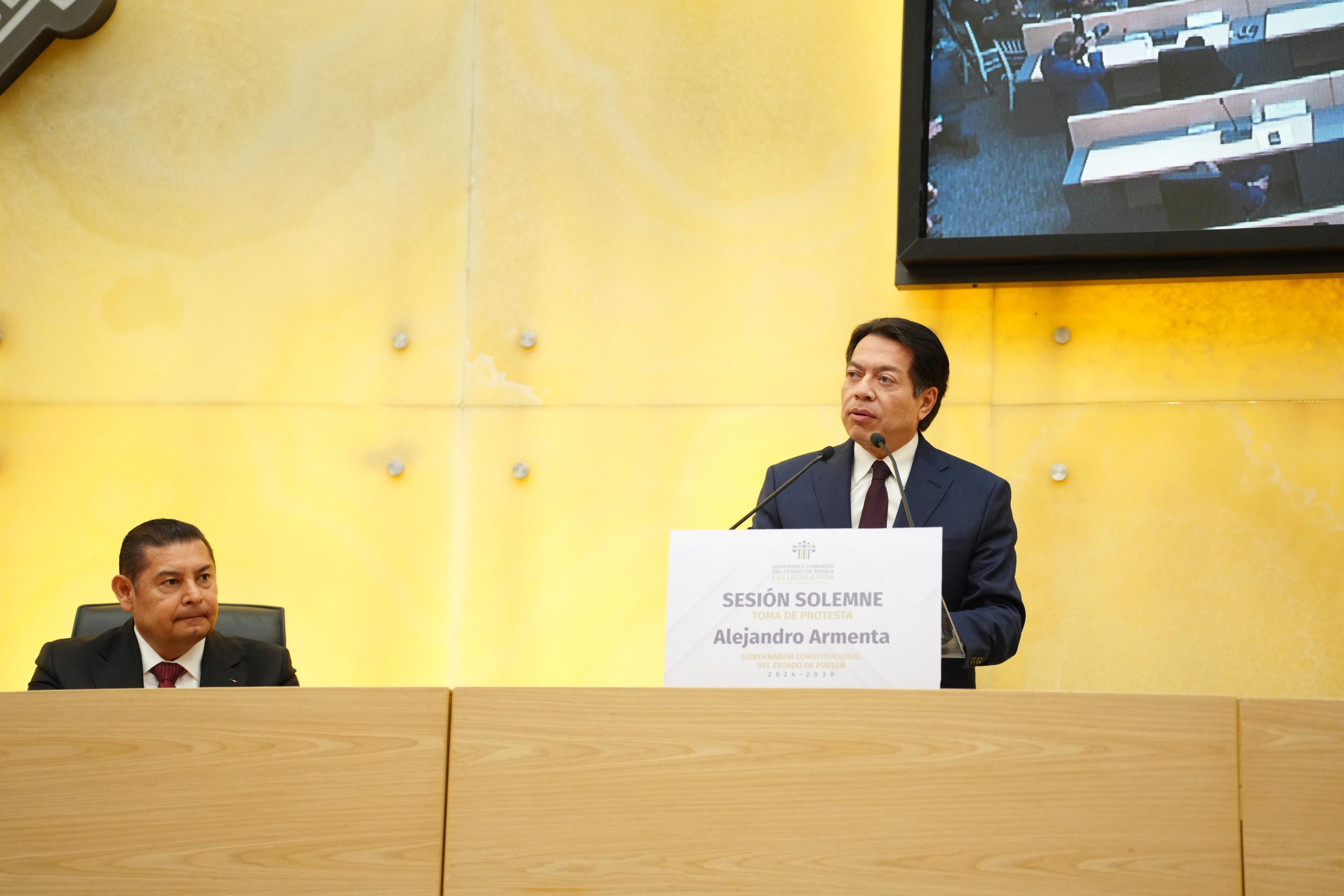En representación de la presidenta Claudia Sheinbaum Pardo, el secretario de Educación Pública, Mario Delgado Carrillo, destacó que la educación pública y el Humanismo Mexicano son pilares fundamentales en la agenda de la Cuarta Transformación durante la toma de protesta del gobernador de Puebla, Alejandro Armenta Mier, en el Congreso del Estado.