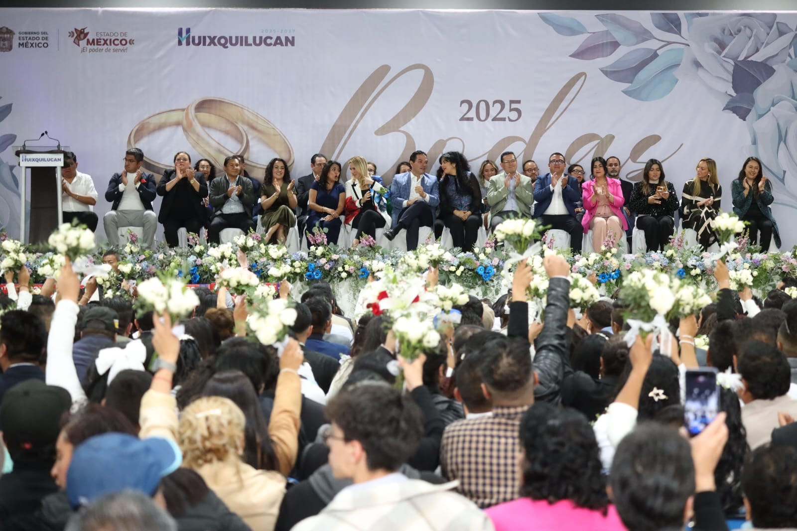 Huixquilucan, Estado de México, febrero 17, 2025.- Para brindar certeza jurídica e incentivar la unión familiar, 243 parejas contrajeron matrimonio civil en las “Bodas 2025”, organizadas por el Gobierno de Huixquilucan, para que comiencen un proyecto de vida en común, reafirmando su compromiso de lealtad, amor y respeto, a través de una vía legal que cuide su patrimonio.