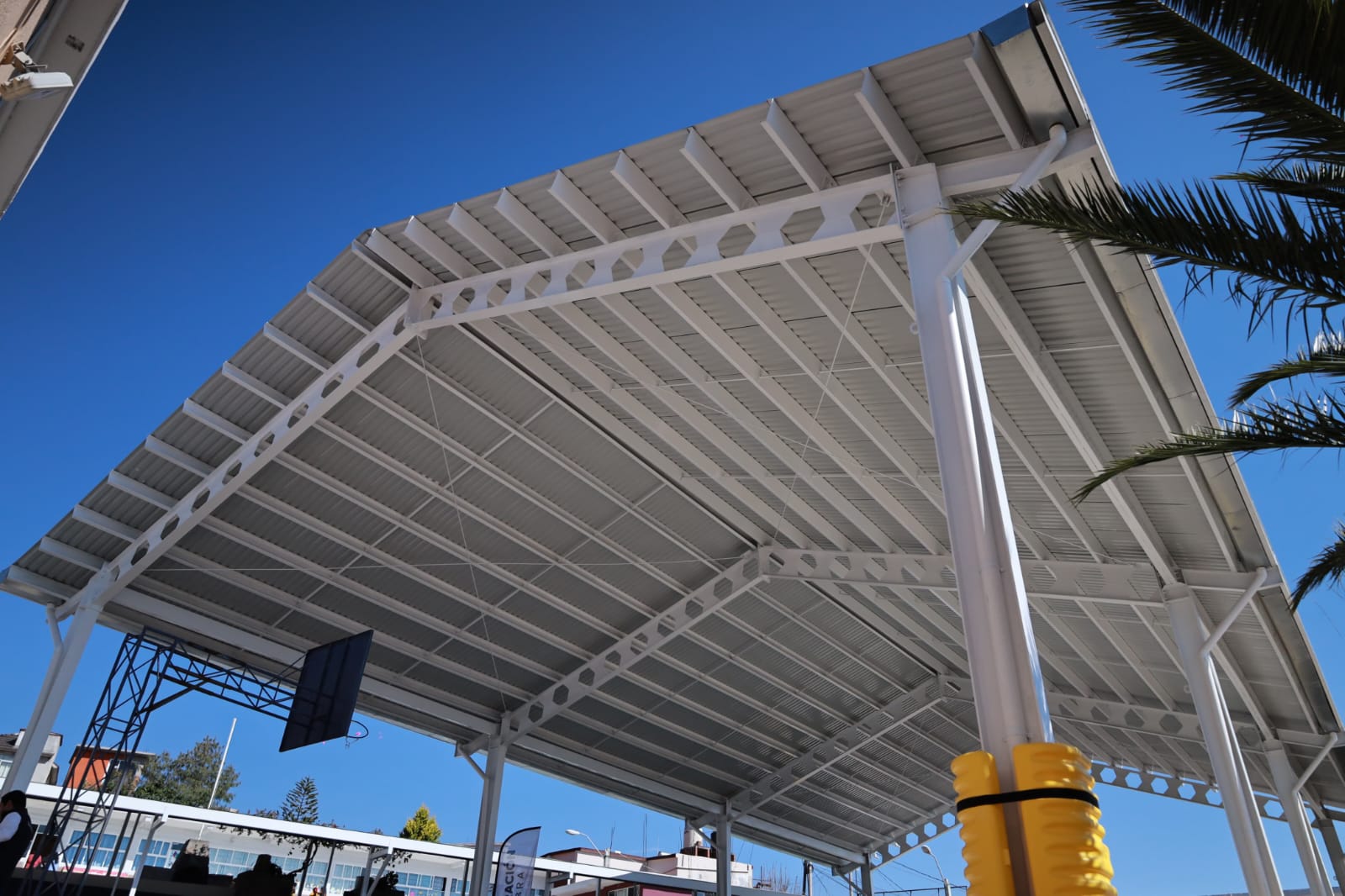 Por su parte, la directora general de Infraestructura y Edificación de Huixquilucan, Jessica Nabil Castillo Martínez, explicó que la construcción de la techumbre consta de 461 metros cuadrados y dicha estructura funciona para proteger a los estudiantes de las inclemencias del clima y puedan realizar actividades al aire libre.