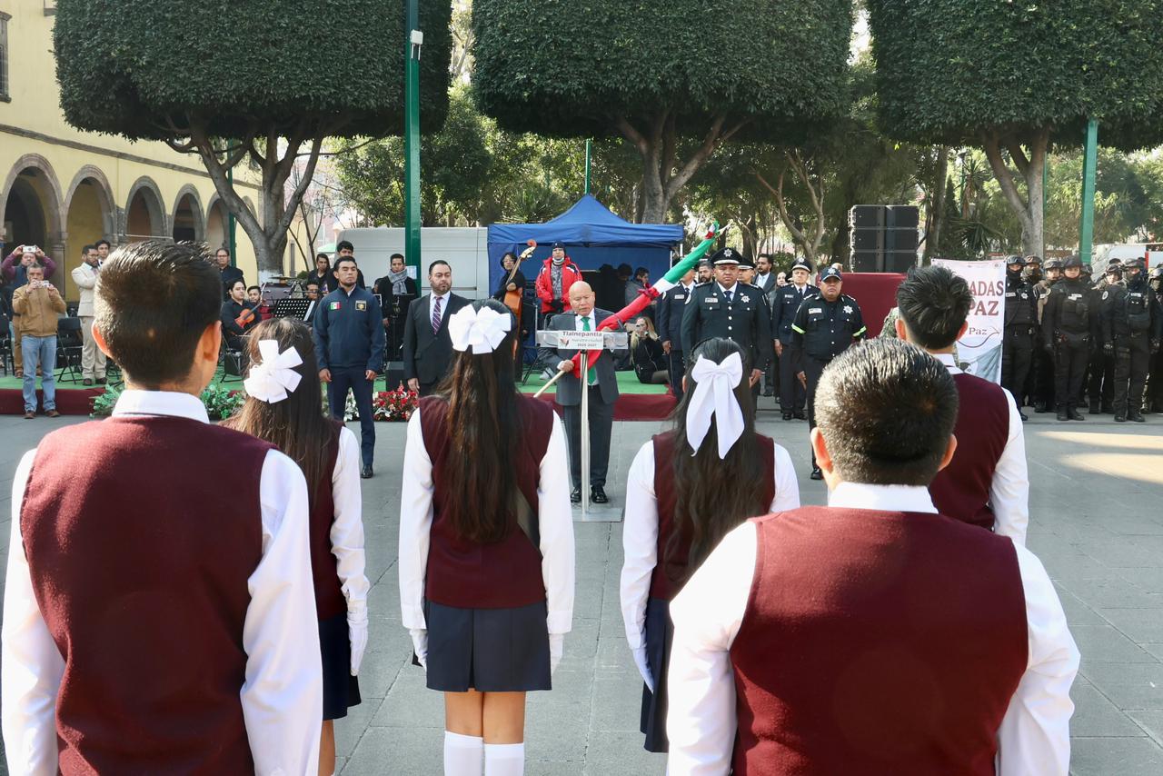 El Presidente Municipal, Raciel Pérez Cruz, encabezó la ceremonia conmemorativa del Día de La Bandera, evento a través del cual el gobierno fomenta en la ciudadanía los valores cívicos que nos unen y nos identifican como mexicanos.