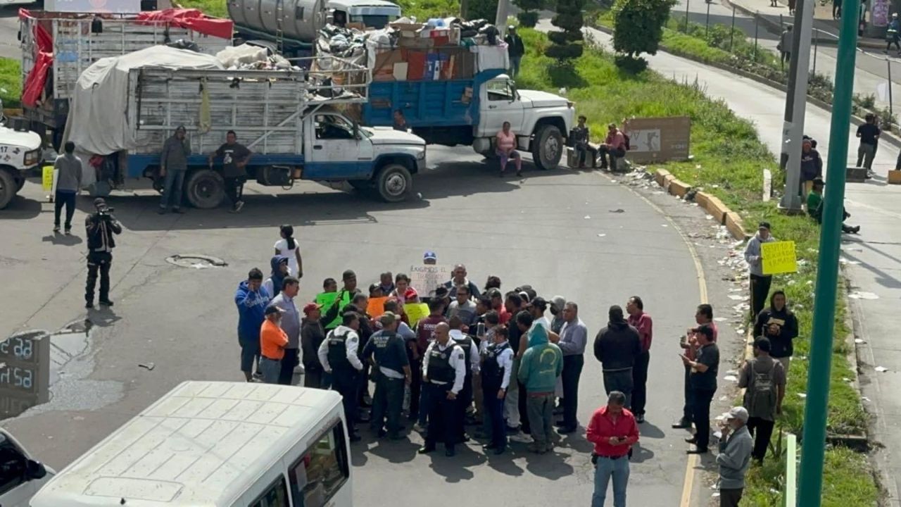Recolectores de basura de los municipios de Nezahualcóyotl y Chimalhuacán bloquearon ambos sentidos de la avenida Bordo de Xochiaca, en el Estado de México, la mañana de este martes.