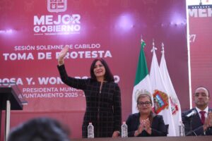 Previamente, Rosi Wong en su calidad de presidenta municipal tomó protesta a los nuevos integrantes del Cabildo del Ayuntamiento 2025