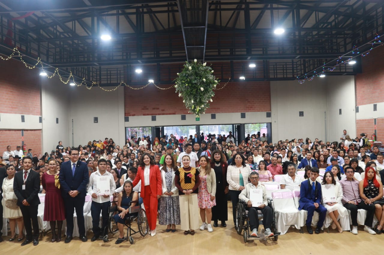 Al encabezar la realización de Bodas Comunitarias en la Unidad Cultural y Deportiva Azquil, donde 100 parejas sellaron su amor al contraer nupcias de manera gratuita en un magno evento, la presidenta municipal, Yoselin Mendoza, les deseó la mayor felicidad y aseguró que con esta acción contribuirán a la reestructuración del tejido social, así como a la paz.