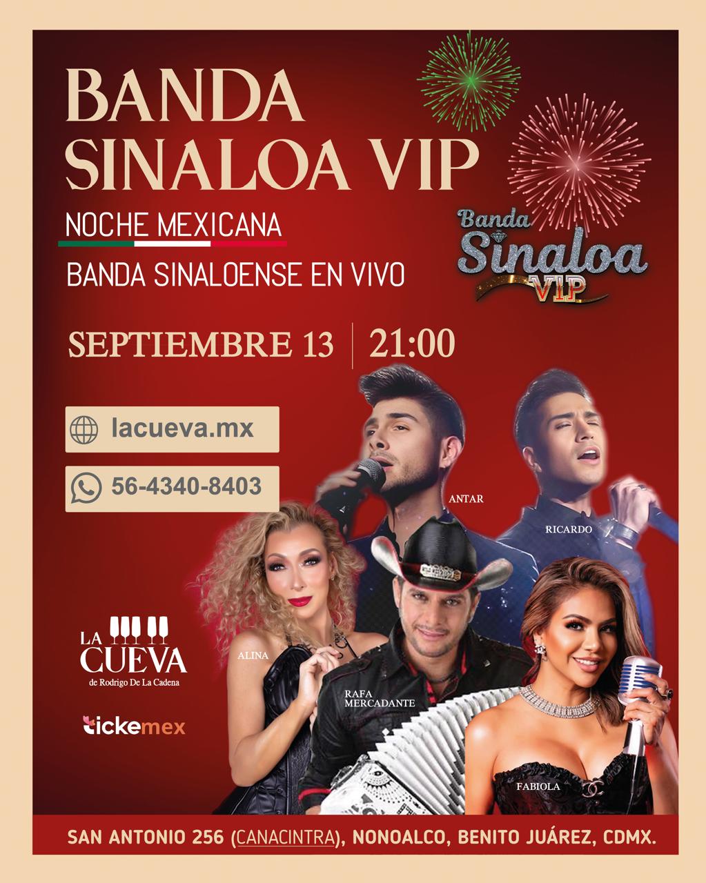 El próximo 13 de septiembre, en vísperas de los festejos del Día de la Independencia de México, La Cueva de Rodrigo de la Cadena se vestirá de gala para recibir el exclusivo concepto Sinaloa VIP. Este evento único, caracterizado por su elegancia y sofisticación, promete ofrecer una experiencia inolvidable para los amantes del regional mexicano y la música de banda. Boletos a la venta en el Sistema Tickemex en https://lc.cx/sNQ6N0