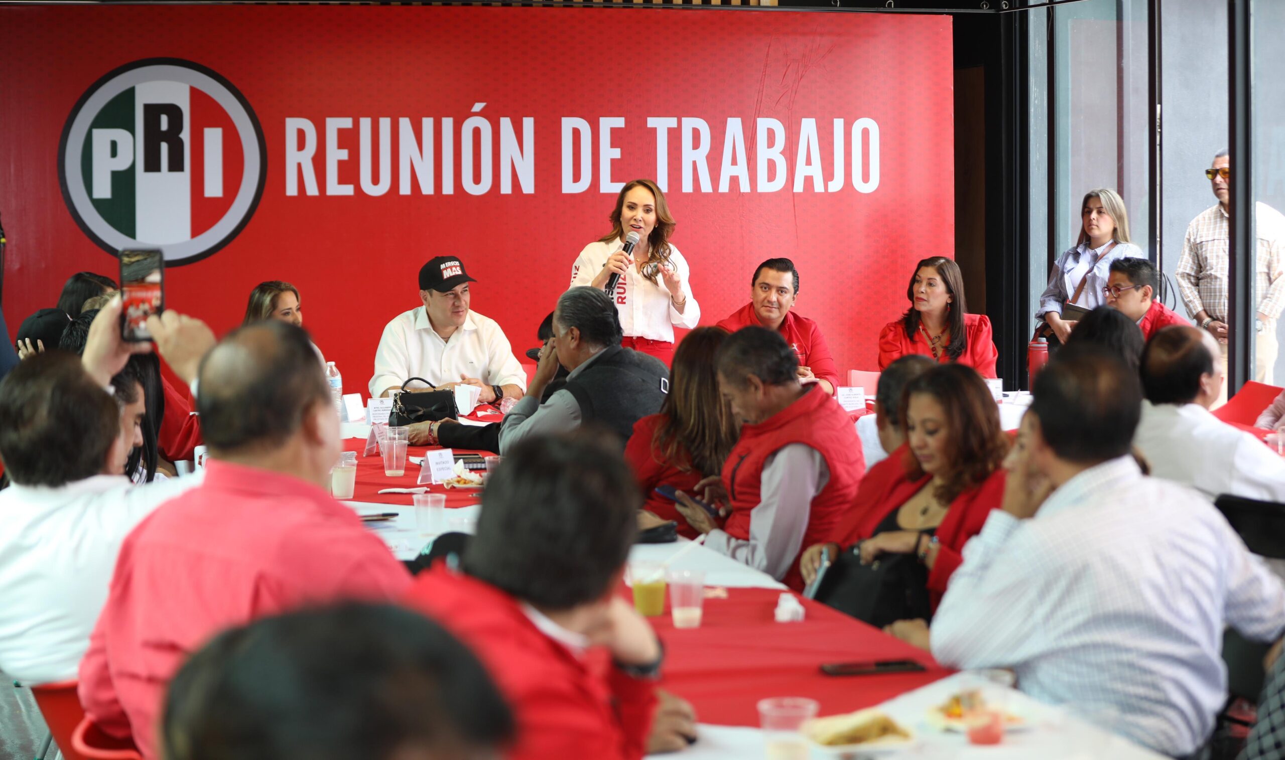En reunión de trabajo con liderazgos políticos de Ecatepec, la dirigente estatal escuchó todos los planteamientos para que el PRI le vuelva a dar rumbo a la patria y se atiendan las necesidades de una población que fue engañada por los gobiernos corruptos del movimiento de destrucción nacional y que pretenden imponerse como partido único sometiendo a los Poderes de la Unión.