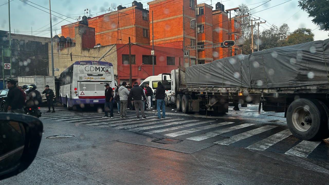 La mañana de este martes se registró un accidente entre un camión de transporte público y un tráiler sobre Circuito Interior, esquina con Eje 1 Norte, en la colonia Agricultura, alcaldía Miguel Hidalgo.