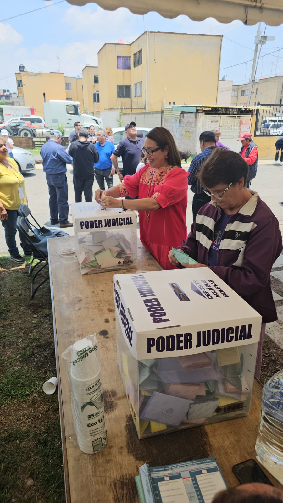 La alcaldesa Azucena Cisneros Coss ejerció su derecho al voto en la elección del Poder Judicial 2025 y sufragó en la unidad habitacional La Monera, en Ecatepec, el municipio con más habitantes del Estado de México y donde el proceso electoral transcurre de manera tranquila.
